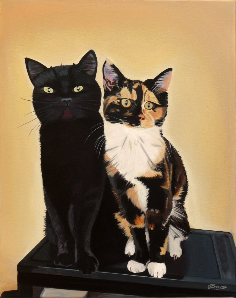 This pair of cats were a joy to paint. The photograph I was working from had a very dull grey background which I decided didn’t do them justice. They needed to glow! I think I achieved just that.
